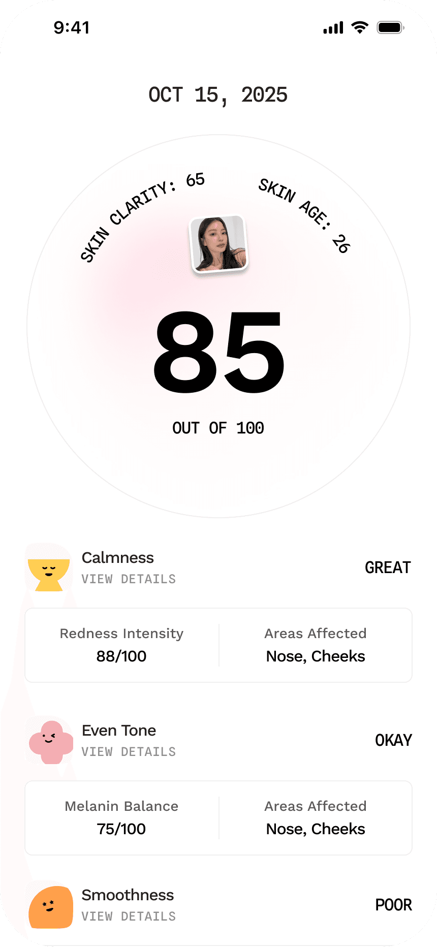 We measure your skin across six categories